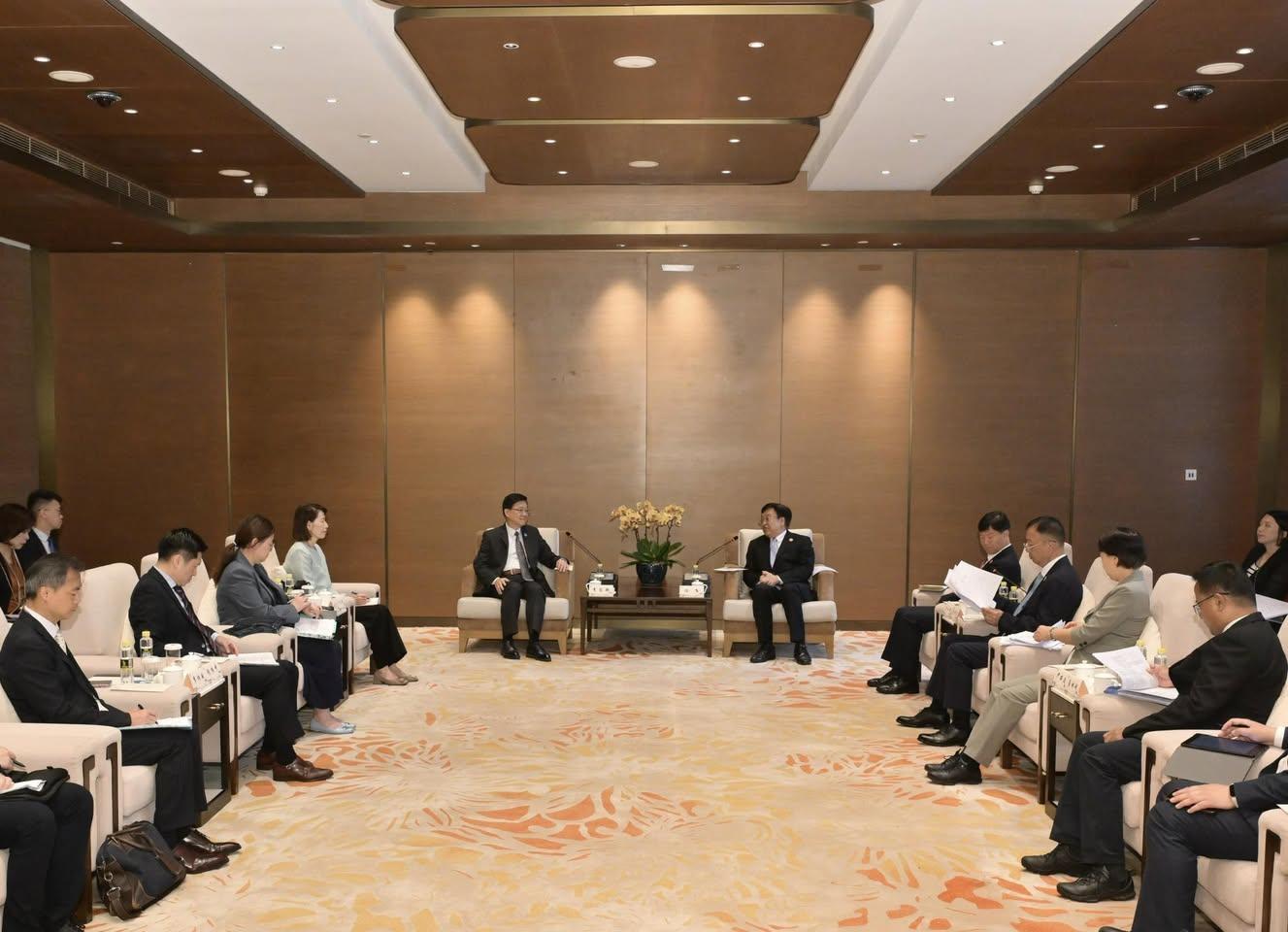 行政长官李家超今日(3月25日)在博鳌与海南省委书记冯飞会面,就加强香港和海南在经贸投资、金融、专业服务等方面深入交流。