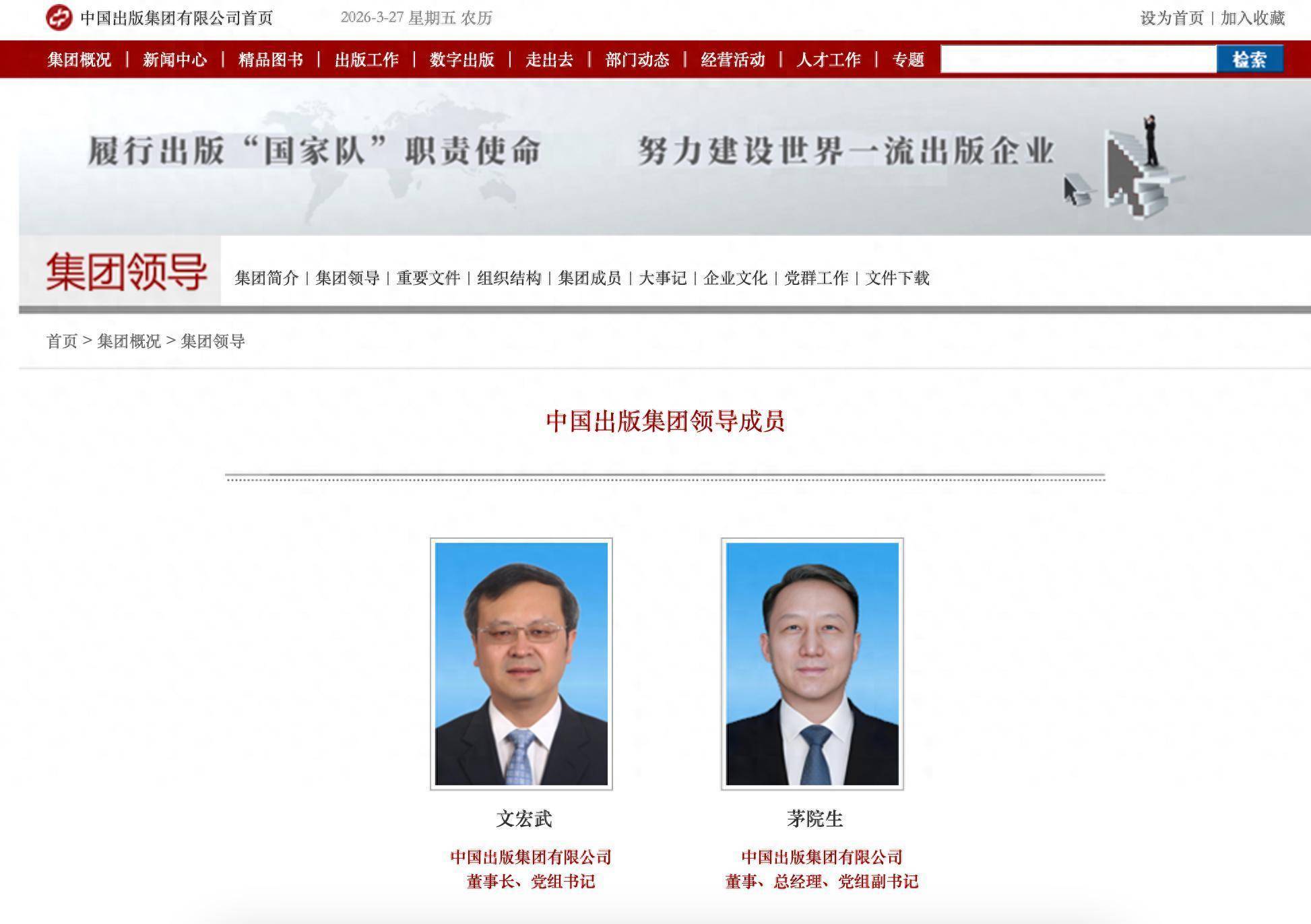 中国出版集团官网显示,文宏武已任中国出版集团有限公司董事长、党组书记。